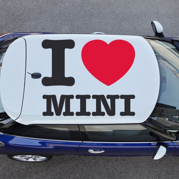 Affichez fièrement que vous aimez votre voiture avec notre sticker i love mini. Une déco bicolore qui s'intègre parfaitement à votre auto, avec par exemple la possibilité de le poser sur votre toit en choisissant la grande taille pour une personnalisation unique avec son grand coeur rouge.